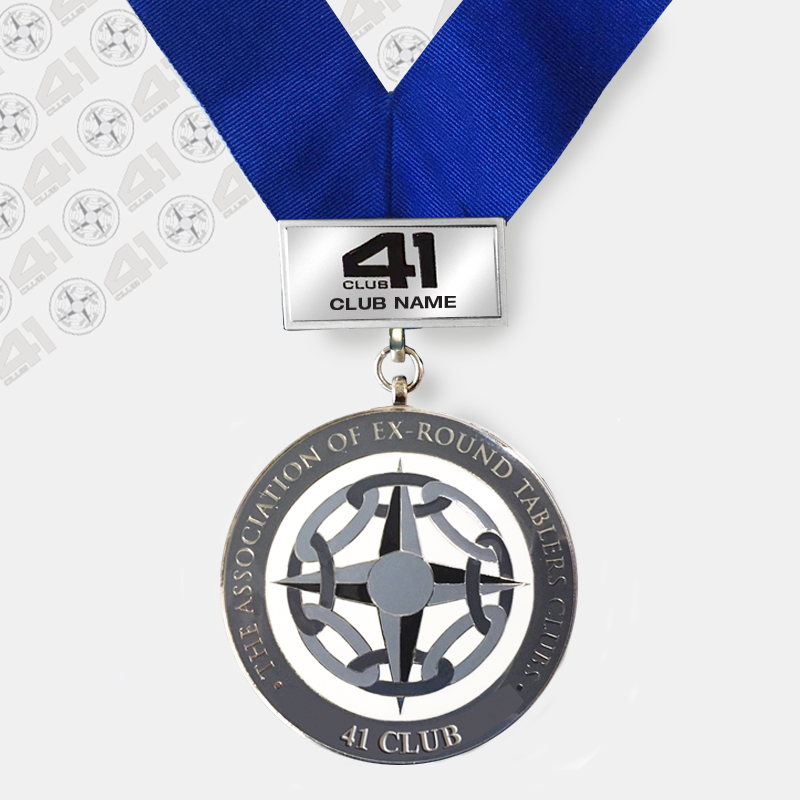 41 Club 60mm dia enamelled Jewel hanging from a Regalia Blue Collarette with rear hook & eye and 40 x 20mm pinned brooch bar engraved and enamelled with Club name for Club Chairman.