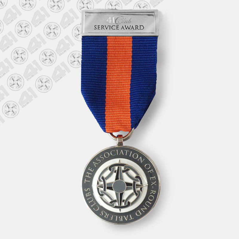 Service Award Medal with Blue/Orange Ribbon supplied in a Clear Plastic Pouch.